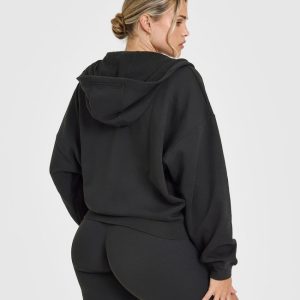 Mid Weight Zip Through Hoodie Soft Black
