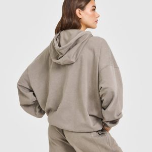 Raw Lounge Oversized Zip Hoodie Washed Dark Khaki