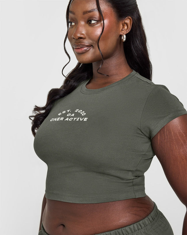 Cotton Baby T-Shirt with Graphic Dark Khaki