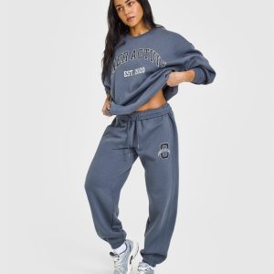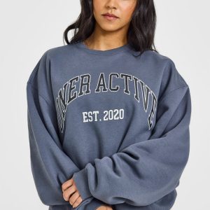 Foundations Oversized Sweatshirt With Large Printed Graphic Granite Blue