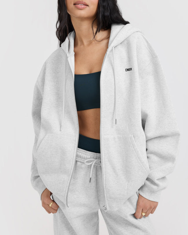 Foundations Zip Through Hoodie Light Grey Marl