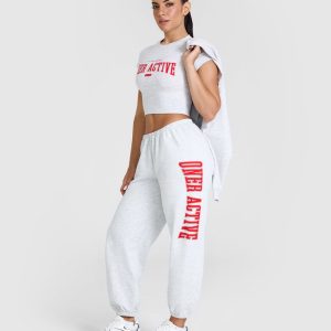 Lightweight Joggers with Red Graphic Light Grey Marl