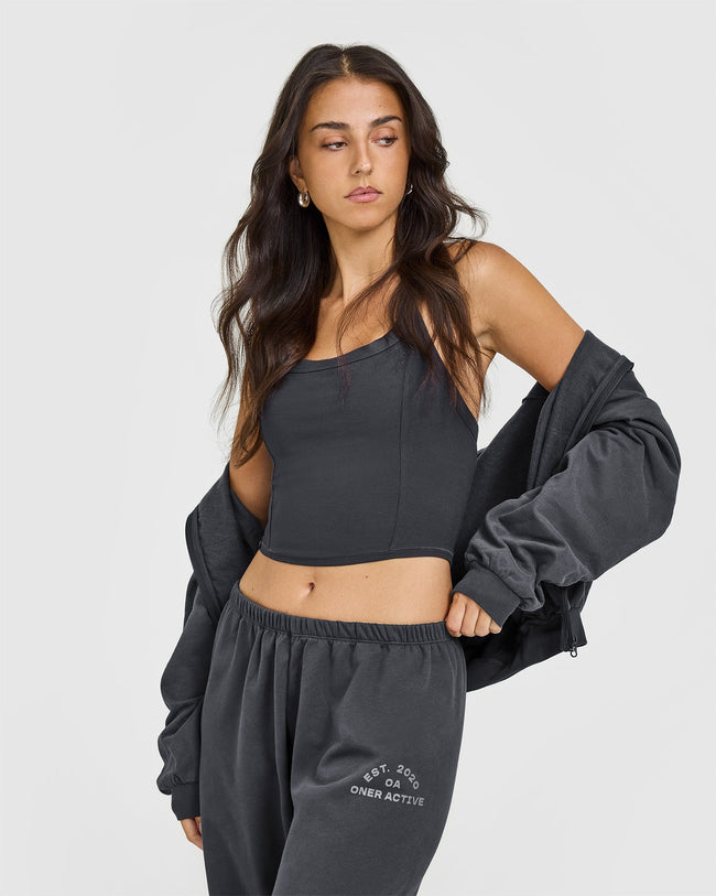 Lightweight Straight Leg Joggers with Graphic Coal