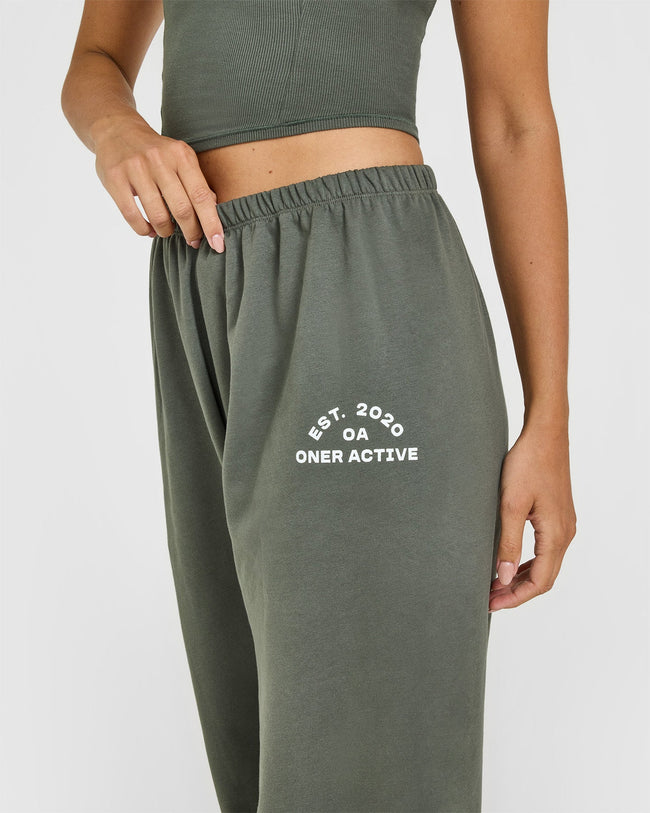 Lightweight Straight Leg Joggers with Graphic Dark Khaki