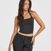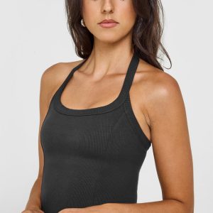 Mellow™ Rib Halter Neck Vest with Built in Bra Shelf Soft Black