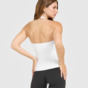 Mellow™ Rib Halter Neck Vest with Built in Bra Shelf White