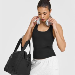 Mellow™ Rib Scoop Neck Vest with Built in Bra Shelf Soft Black