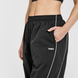 Oversized Piped Woven Straight Leg Track Bottoms Soft Black