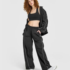 Oversized Piped Woven Straight Leg Track Bottoms Soft Black