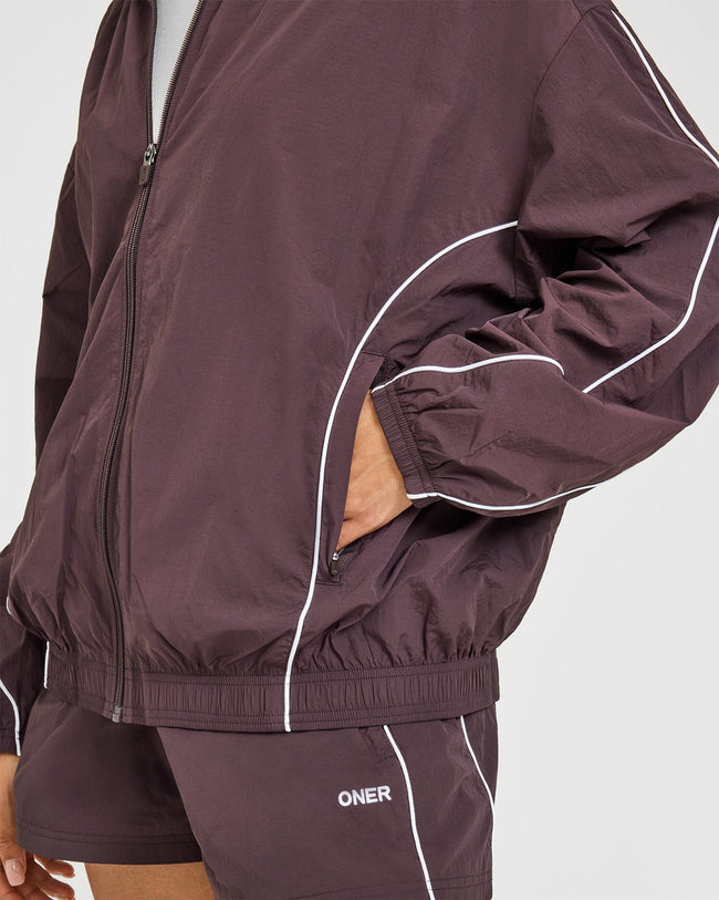 Oversized Piped Woven Track Jacket Deep Umber Brown