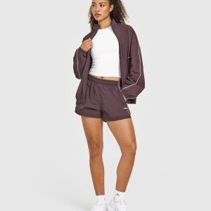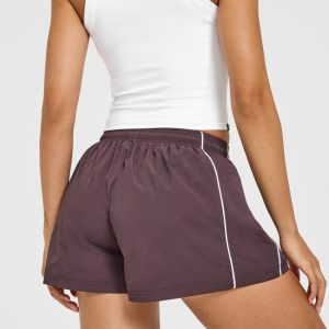 Oversized Piped Woven Track Shorts Deep Umber Brown