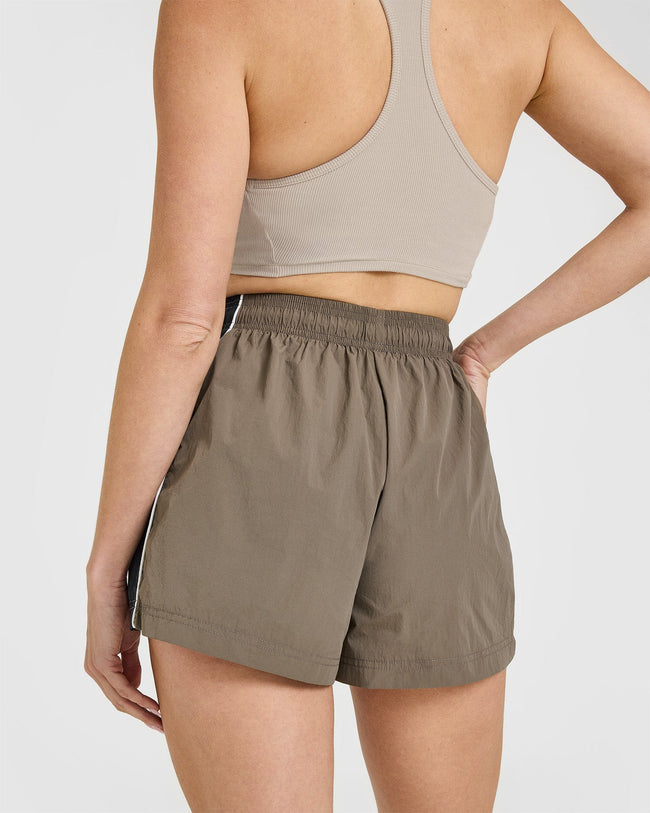 Oversized Piped Woven Straight Leg Track Bottoms Deep Umber Brown