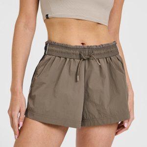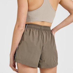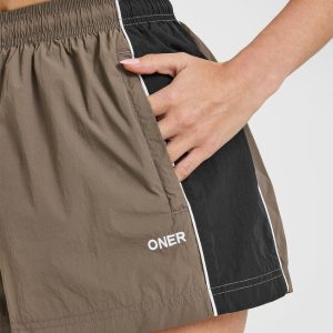 Oversized Piped Woven Track Shorts Moss Brown