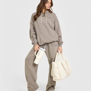Foundations Oversized Hoodie With Large Printed Graphic Light Grey Marl