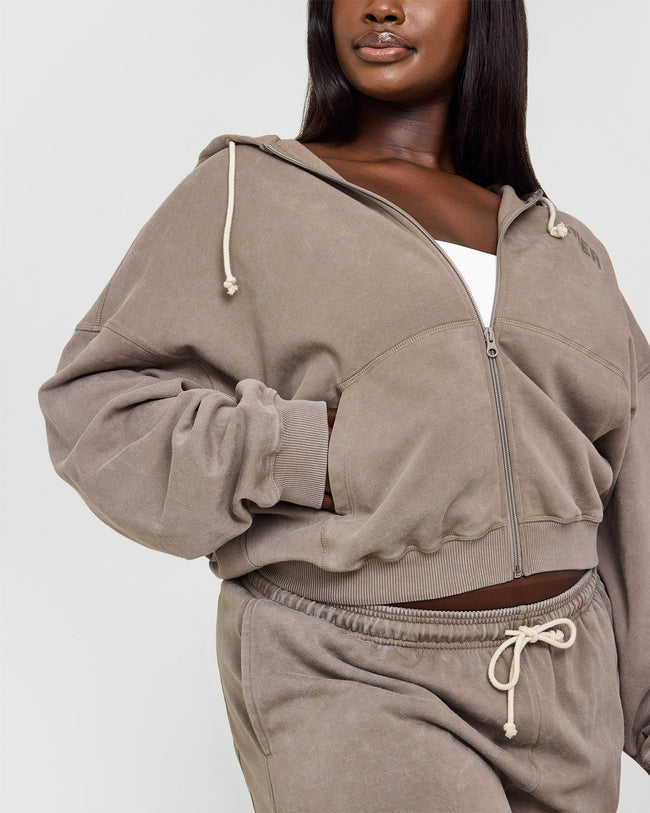 Raw Lounge Oversized Zip Hoodie Washed Warm Sand