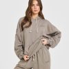 Oversized Piped Woven Straight Leg Track Bottoms Deep Umber Brown