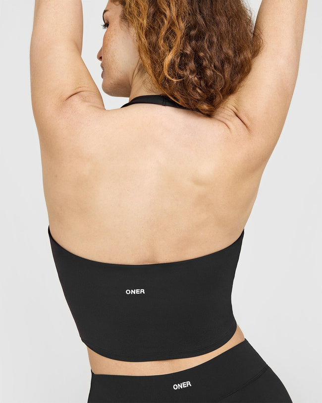 SoftMotion™ Halter Neck Mid Vest with Built in Bra Shelf Soft Black